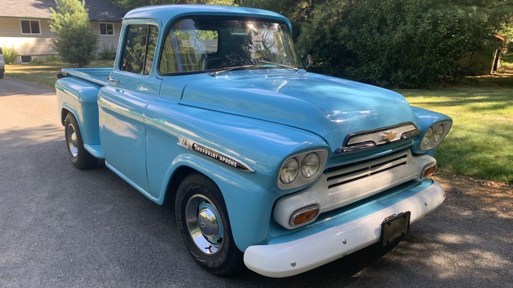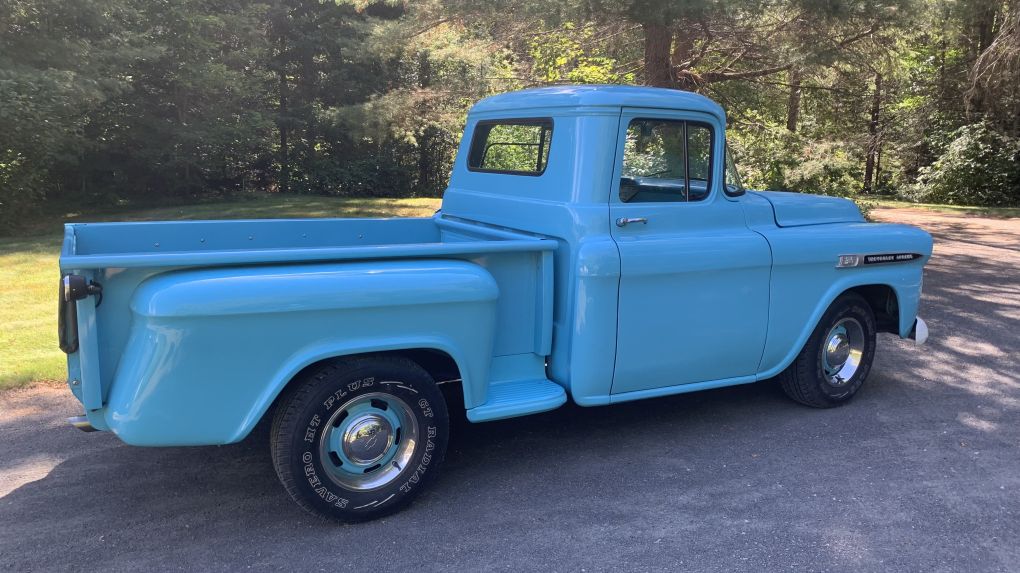 59 Chevy Apache. Completely restored with 17,000km. 1958 348 cu/in motor.